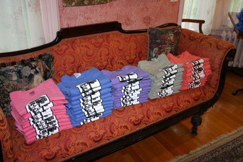 I ordered more of our great Hudson River Valley Art Workshop t-shirts in all new colors and I must have been carried away by the colors because I ordered way too many and now I have no where to store them!