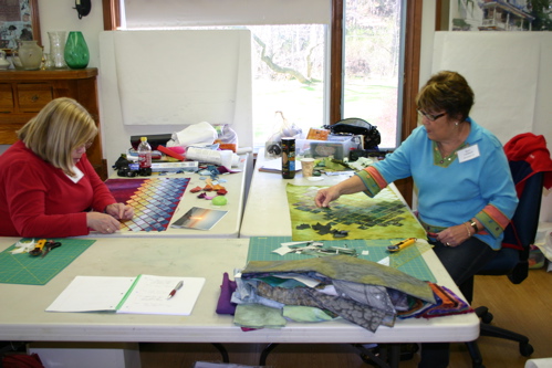 Gloria Loughman, the marvelous quilt artist from Australia, is here this week to teach “Painting a Landscape with Fabric.”