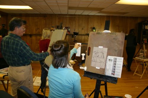 Hurricane Sandy was still heading up the coast when Margaret Dyer and her students arrived for her 3-day pastel figures workshop. I was constantly monitoring the weather channel and projections for the effect of the storm on our area and it looked like we were going to do alright in our neck of the woods this time. But having weathered Irene last year with a full workshop in house, we were prepared for whatever might happen.