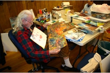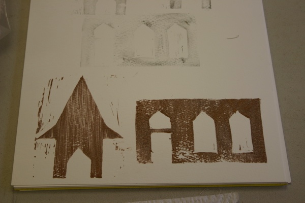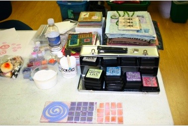 The next morning after breakfast (the special was Cranberry Almond Buttermilk Pancakes – yum), everyone jumped right in to work in the studio. by the time I got over there later in the morning, everyone’s table was covered with the first exercises.